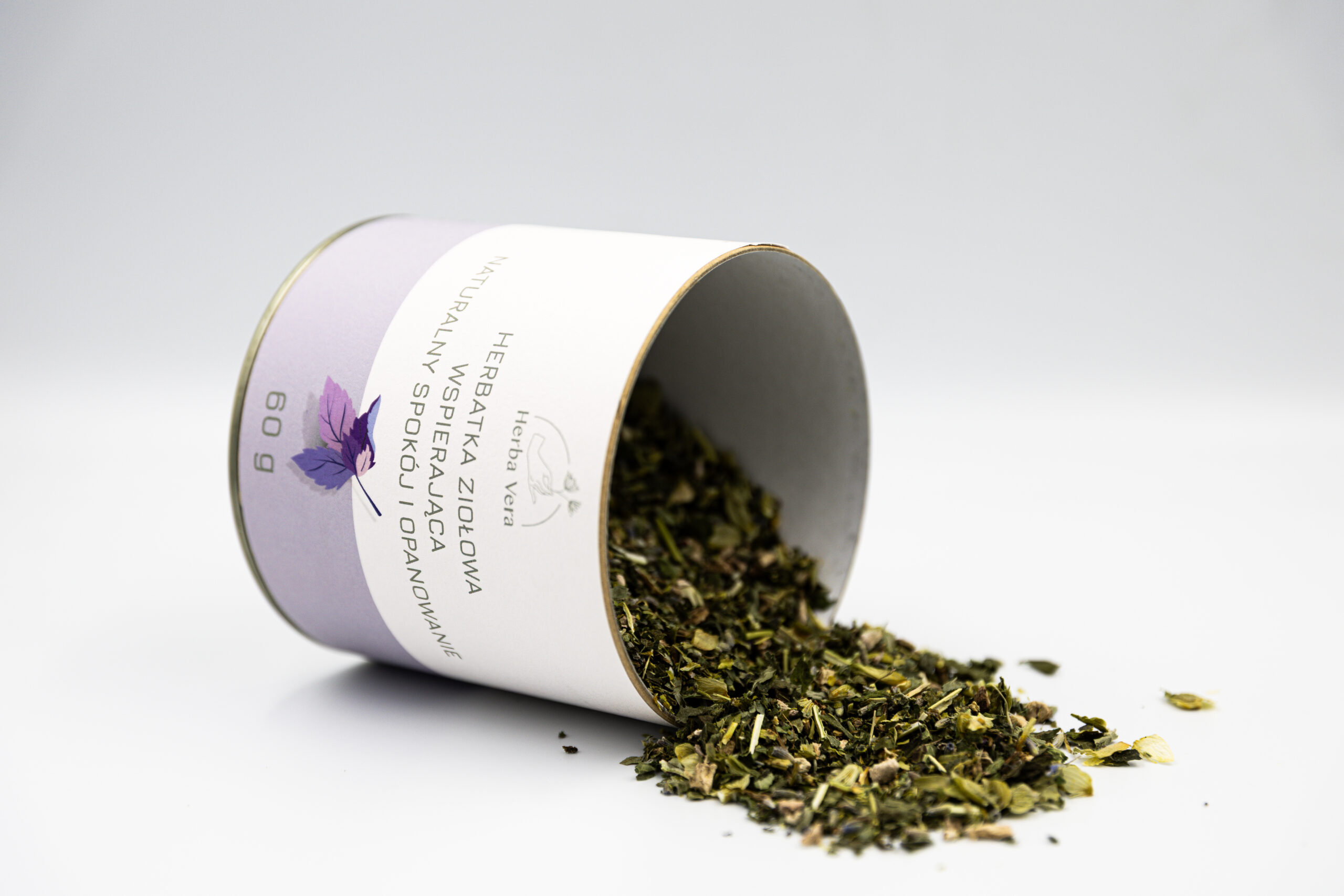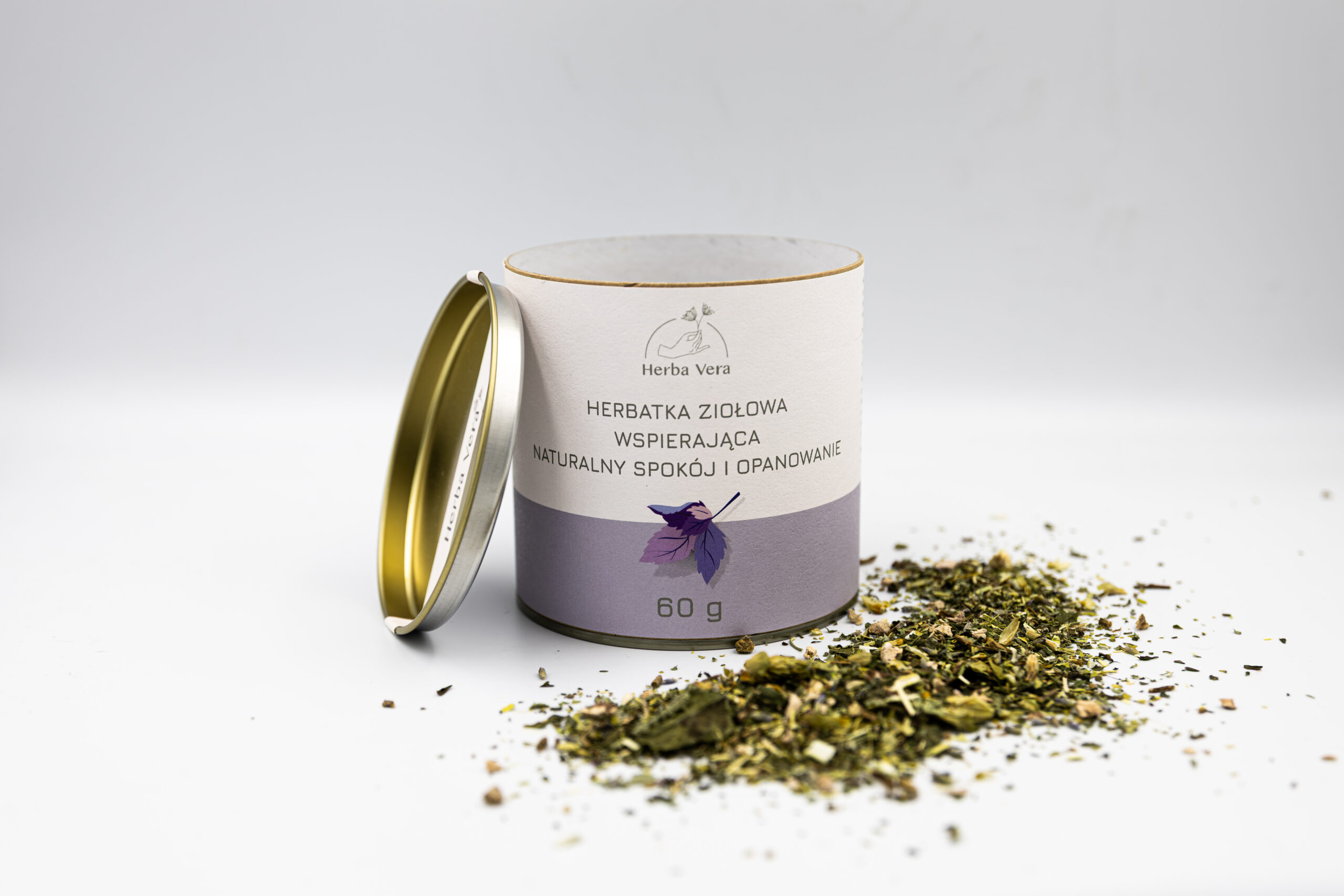 Skład: Męczennica cielista, kozłek lekarski, ziele serdecznika, liść melisy, kłącze tataraku, mięta pieprzowa, lawenda, szyszki chmielu, korzeń arcydzięgla.
