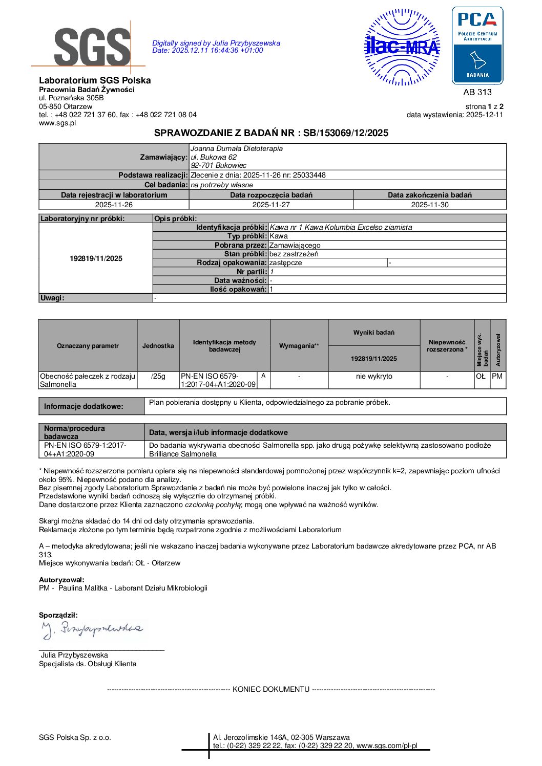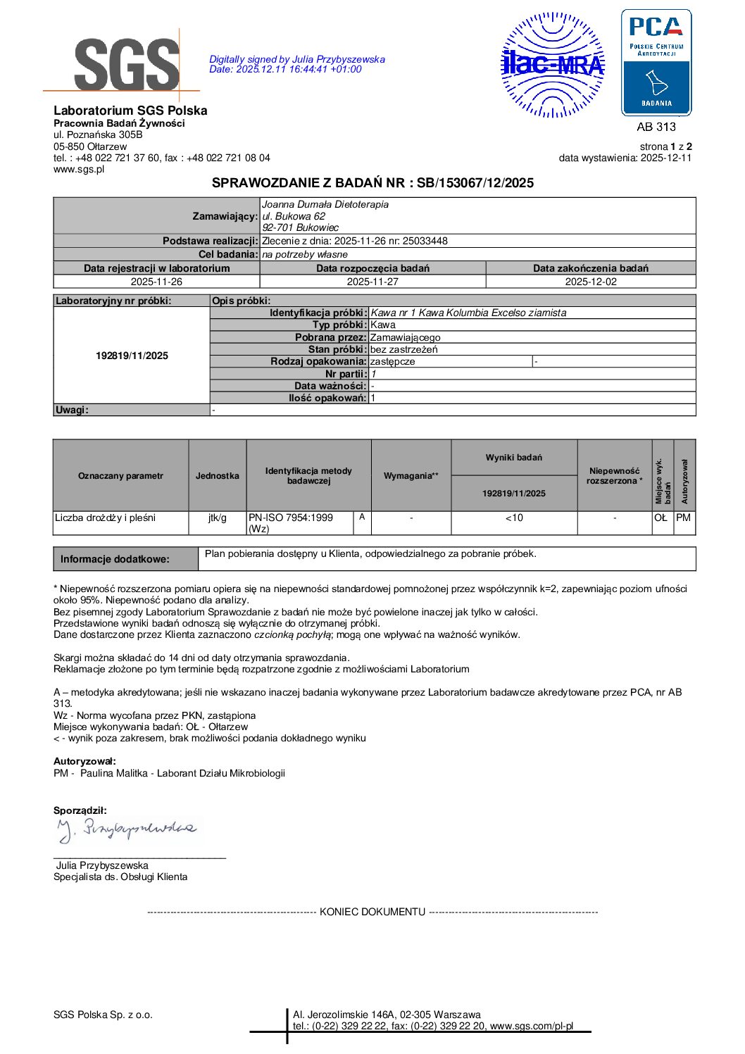 Kontrola laboratoryjna daje większą pewność, że wybierasz produkt nie tylko świeży i aromatyczny, ale również o potwierdzonej czystości.