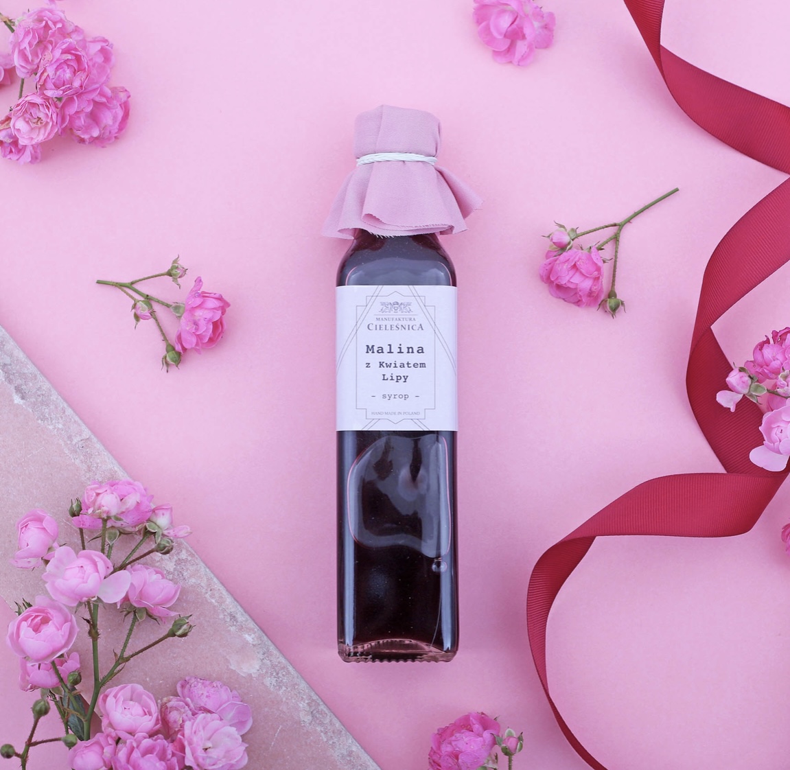 Syrop malinowy z kwiatem lipy – naturalny smak do herbaty, napojów i deserów.