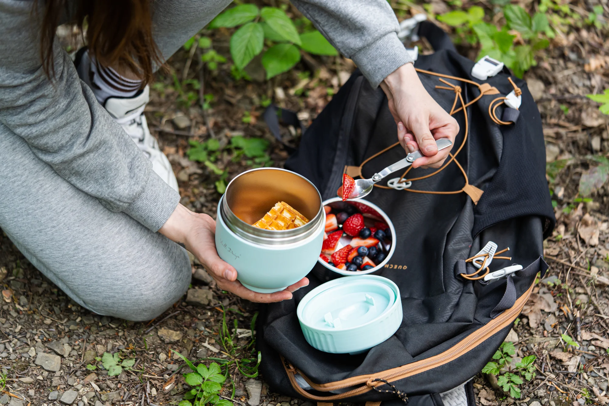 Wbudowany pojemnik umożliwia oddzielenie dodatków, takich jak grzanki, warzywa czy zioła, które można dodać tuż przed spożyciem. W zestawie znajduje się także składana łyżka, umieszczona w specjalnej tackce, co sprawia, że cały zestaw jest wyjątkowo kompaktowy i gotowy do użycia w każdej sytuacji.